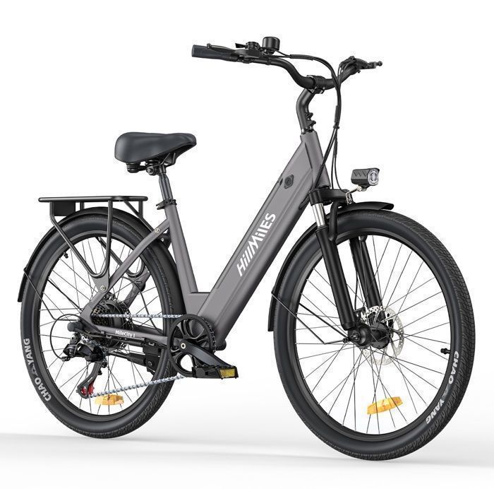 HILLMILES Milecity 1 – 26-Zoll-Elektrofahrrad – 250-W-Motor – abnehmbarer 36-V-13-Ah-Akku – 100 km Reichweite – Shimano 7 Gänge, Grau
