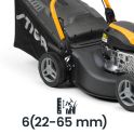 Schnitthöhe: 22 – 65 mm (6 Positionen, zentral)