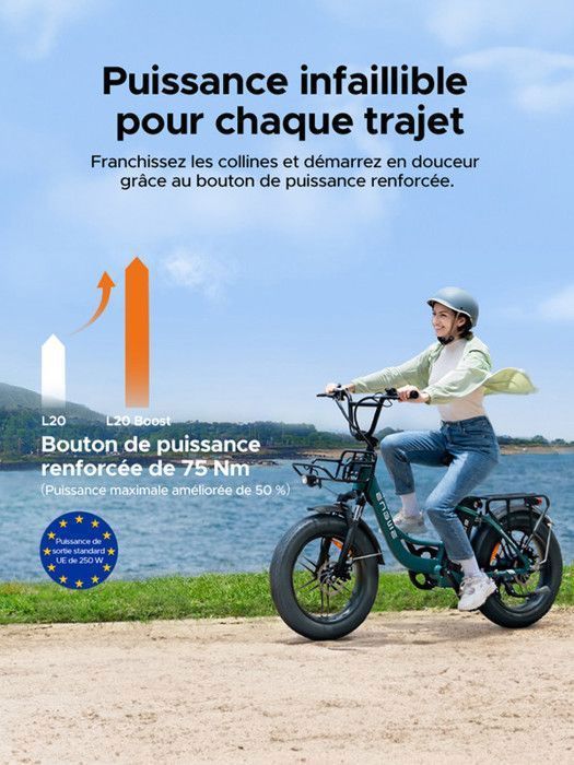 – Produktname: ENGWE L20 BOOST – 20″ Elektrofahrrad – Reichweite 140 km – Abnehmbarer 48V13Ah Akku – 250W Motor – 7 Geschwindigkeiten – VTC Fat Bike, Schwarz