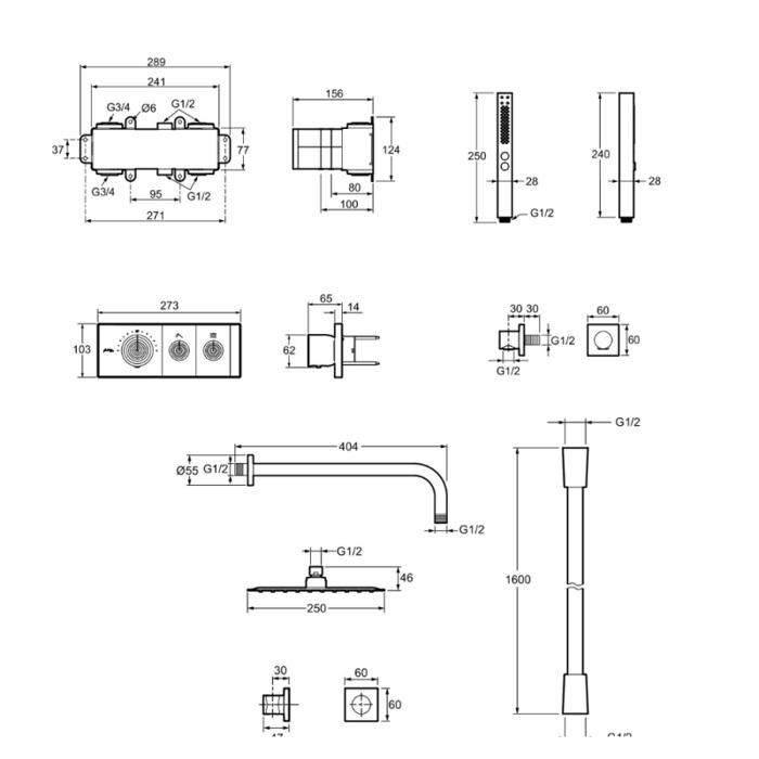 Sicherheit und Stil mit ihrem quadratischen Design und der ChromoberflĂ€che. Dieses Komplettpaket umfasst einen 250-mm-Duschkopf, eine 2-Strahl-Handbrause, einen Thermostatmischer mit Sicherheitsstopp bei 37 °C und alle fĂŒr die Installation erforderlichen Elemente. Der verdrehsichere Schlauch, die konstante Temperatur und das intuitive Steuerungssystem sorgen fĂŒr optimalen Bedienkomfort fĂŒr eine moderne Dusche. 25 cm quadratische Kopfbrause