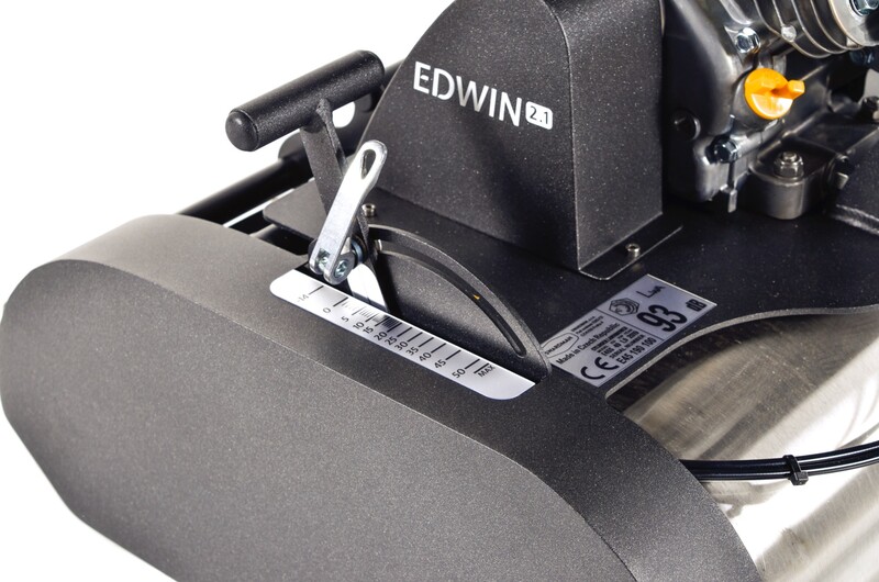 Der Edwin Standard 55 ist für Flächen bis zu 2.000 m² optimiert. Mit einer theoretischen Flächenleistung von 3.300 m²/h kommen Sie zügig voran. Der Briggs & Stratton Motor treibt dabei sowohl die Spindel als auch den Fahrantrieb (bis zu 6 km/h) an. Der großzügige 50-Liter-Grasfangkorb sorgt für lange Arbeitsintervalle, während die höhenverstellbaren Griffe maximale Ergonomie garantieren.